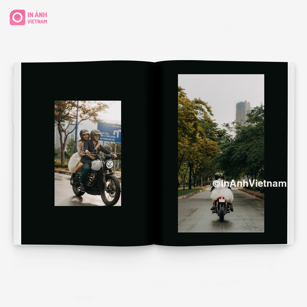 • Đóng cuốn: Có lớp giấy bồi giữa 2 trang ảnh • Bìa cứng in hình