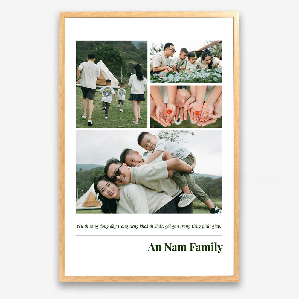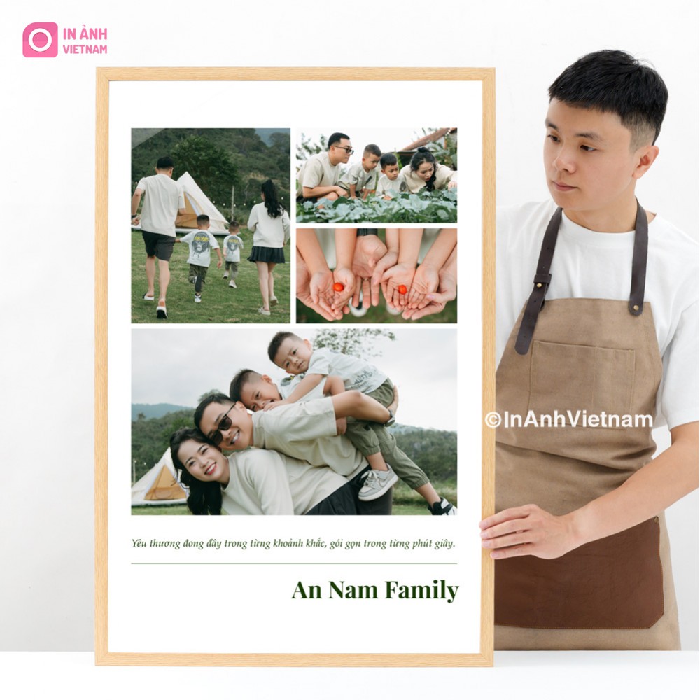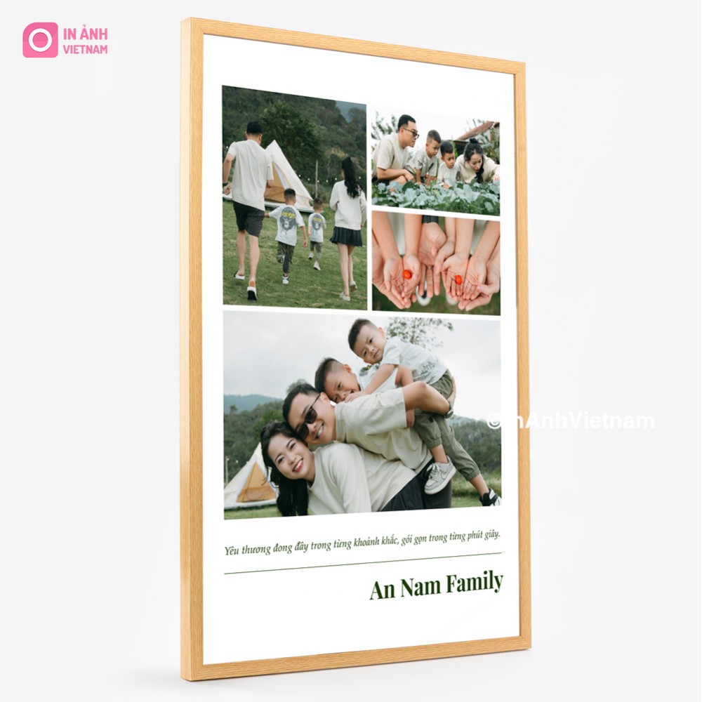 Ảnh gia đình ghi lại những nụ cười, ánh mắt, cử chỉ yêu thương của các thành viên, tạo nên một câu chuyện bằng hình ảnh về tình yêu thương. Ảnh collage ghép 4 ảnh chất lượng cao, thiết kế theo yêu cầu tại In Ảnh Việt Nam.