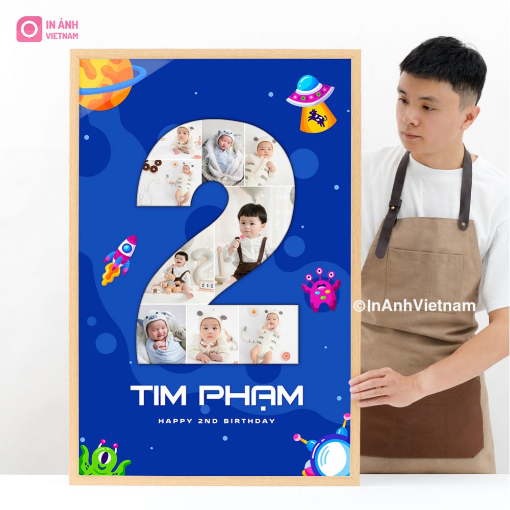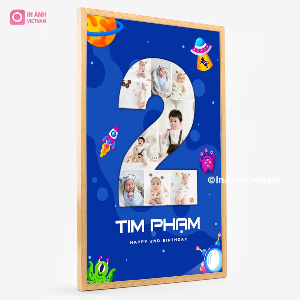 Ảnh được thiết kế với hình dạng số "2" đầy cá tính, thể hiện sự mạnh mẽ và năng động của bé trai.