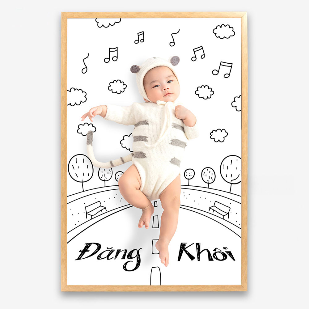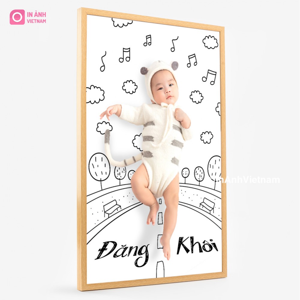 Khung ảnh bé sơ sinh là nơi lý tưởng để trưng bày những bức ảnh đầu tiên của bé, như ảnh sơ sinh, ảnh theo tháng, ảnh gia đình cùng bé.