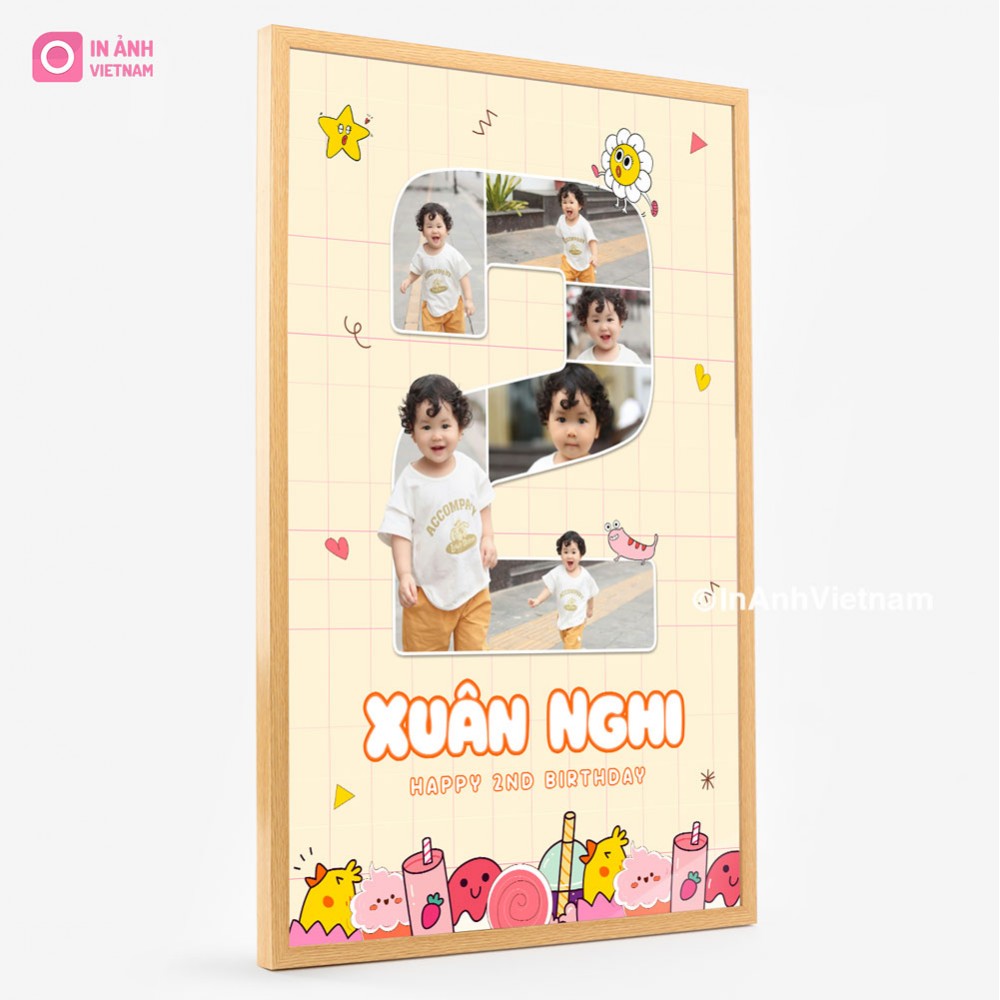 Khung ảnh được thiết kế theo hình dáng số 2, biểu tượng của tuổi thứ hai, tạo sự độc đáo và đặc biệt. Cho phép trưng bày những bức ảnh đẹp nhất của bé gái trong giai đoạn 2 tuổi.