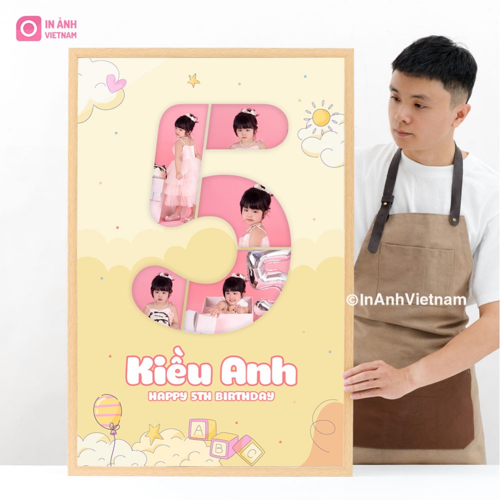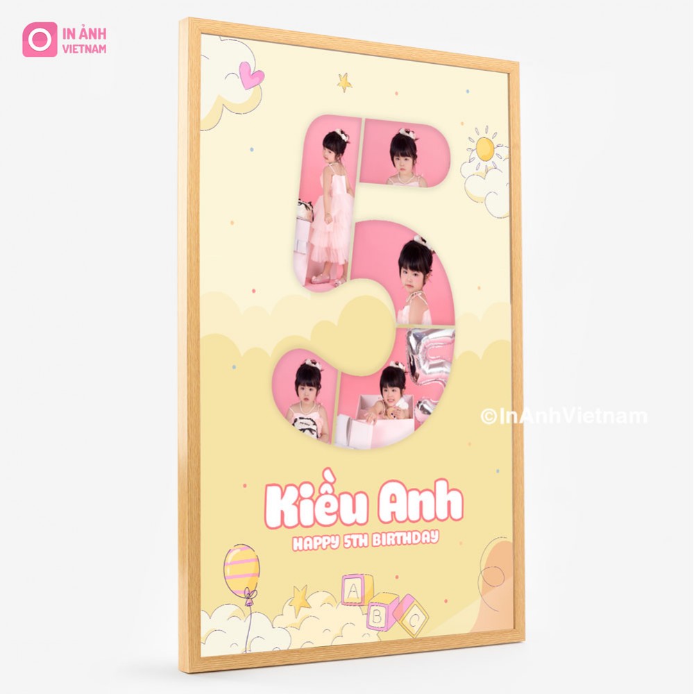Ảnh được thiết kế với hình dáng số 5 mềm mại, duyên dáng, phù hợp với sự nữ tính và đáng yêu của bé gái.